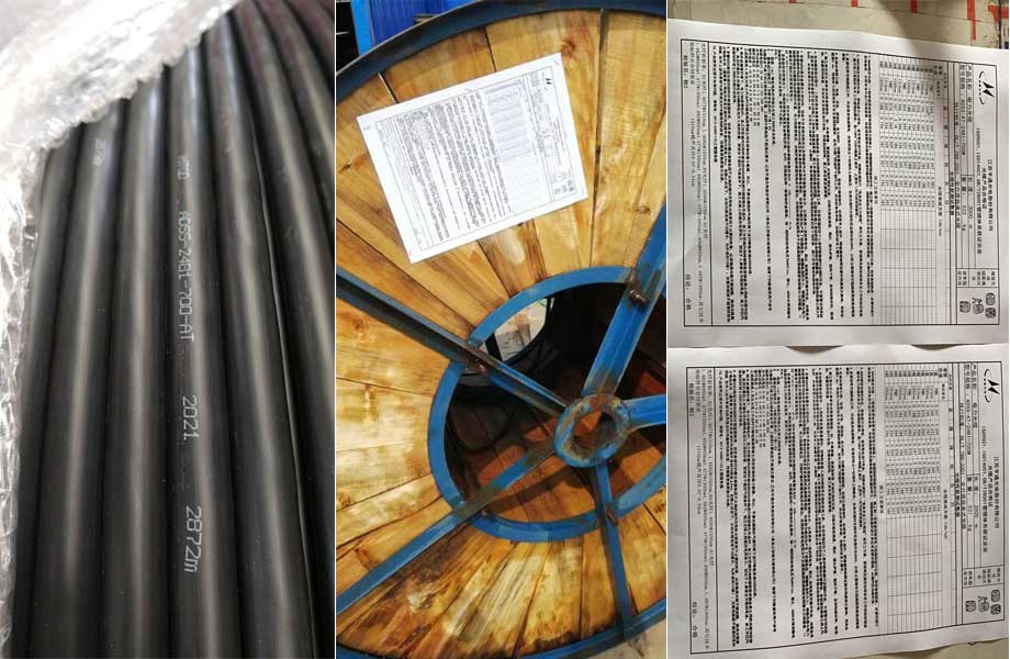 ADSS-AT-24B1-700光缆合格证/检测报告随光缆一起配送,ADSS光缆护套上有光缆米标、型号和生产日期